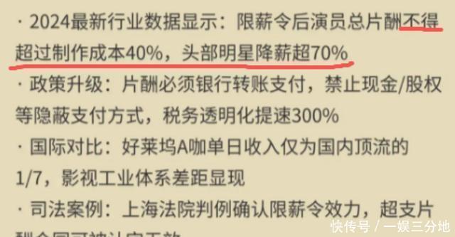 当时因为曝出了演员“天价片酬”的事情,引起了强大的讨论度,于是央视也是迅速行动。 针对于演员片酬的进行了调整,规定人工费不能超过影视剧的制作费,用来限定片酬金额。